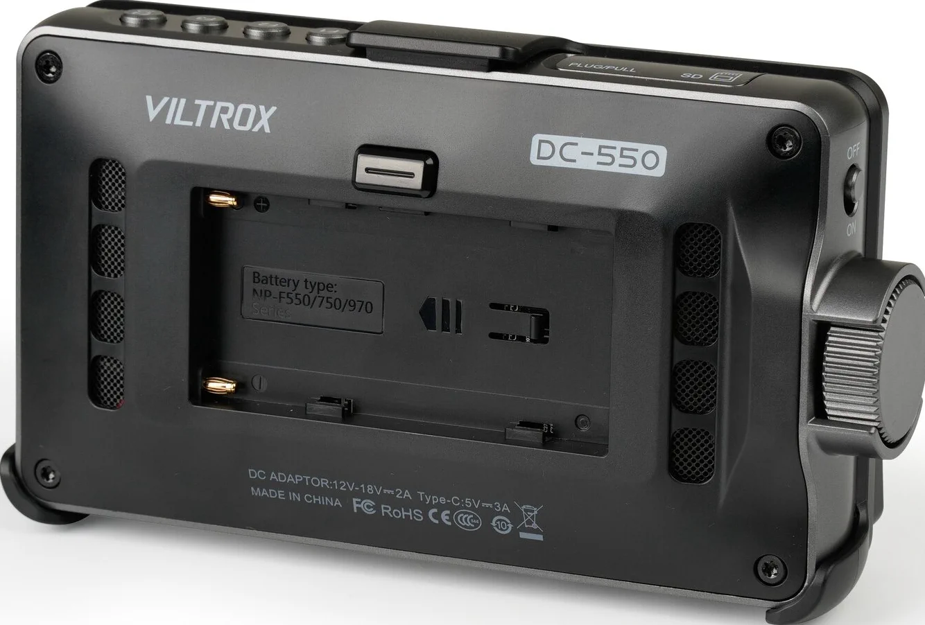 Supporta l’alimentazione a batteria al litio della serie NP-F, nonché l’alimentazione DC IN 12-18V DC, la nuova funzione di power bank Type-C 5V 3A, una varietà di modalità di alimentazione, per risolvere facilmente il problema della durata.